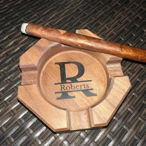 🚬💼 Personalized Name Walnut Cigar Ash tray