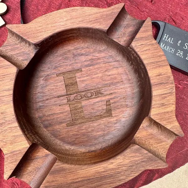 Add names, initials, or a date. Each ashtray is custom-engraved to your order.